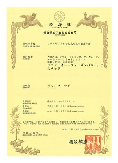 | 2019-04-01 | 10-1966151 | Manufacturing methods of molded products including wood grain film |